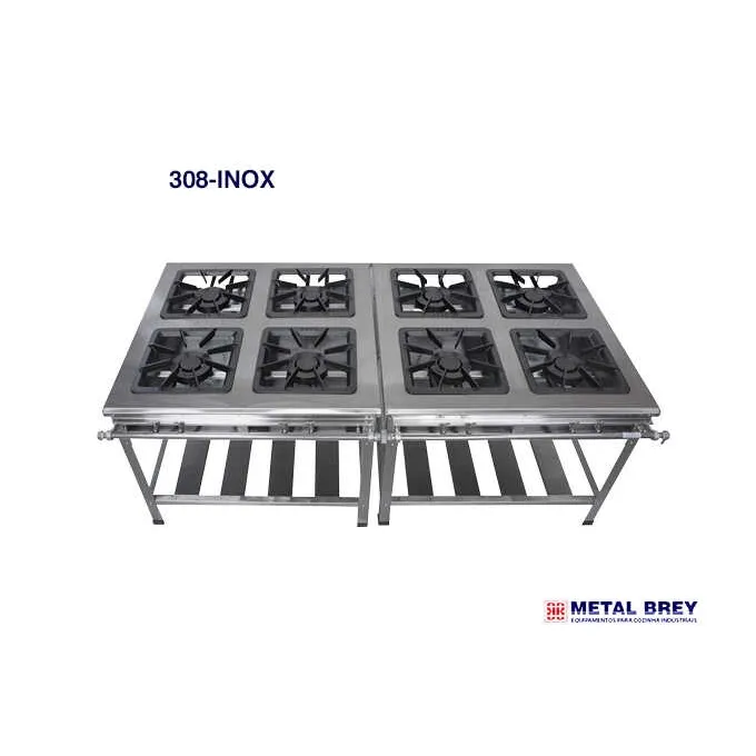 Fogão Industrial 8 Bocas Baixa Pressão Linha Extra Inox.