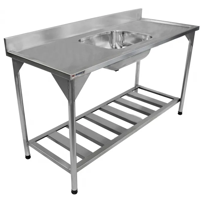 - Pia em aço Inox 304 de 150 x 60 cm com uma cuba 50 x 40 x 20 cm.
