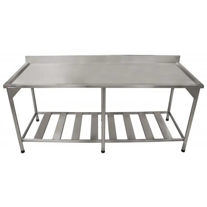 Mesa lisa em aço inox 304 com tampo de 190 x 70 cm.