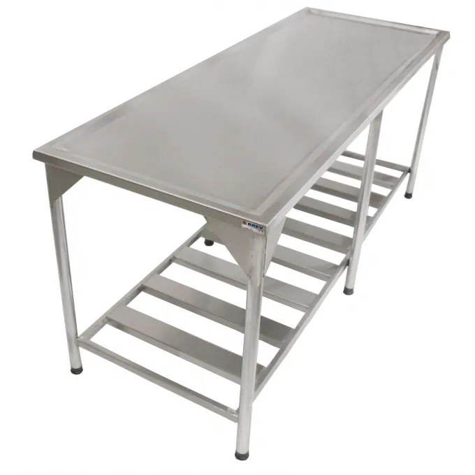 - Mesa Lisa em aço Inox 304 de 190 x 70 cm - Tampo superior fabricado em chapa de aço inox 304 de 1,00 mm de espessura - Pés tubulares em aço inox 304 com sapatas niveladoras em polipropileno - Paneleiro inferior gradeado em aço inox 304