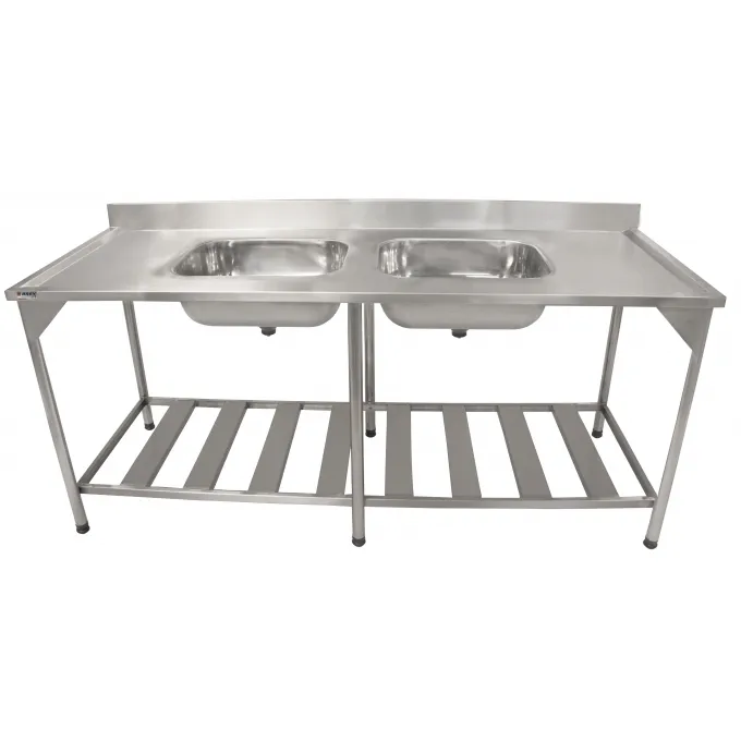 - Pia em aço inox 304 de 190 x 70 cm com duas cubas de 50 x 40 x 20 cm.