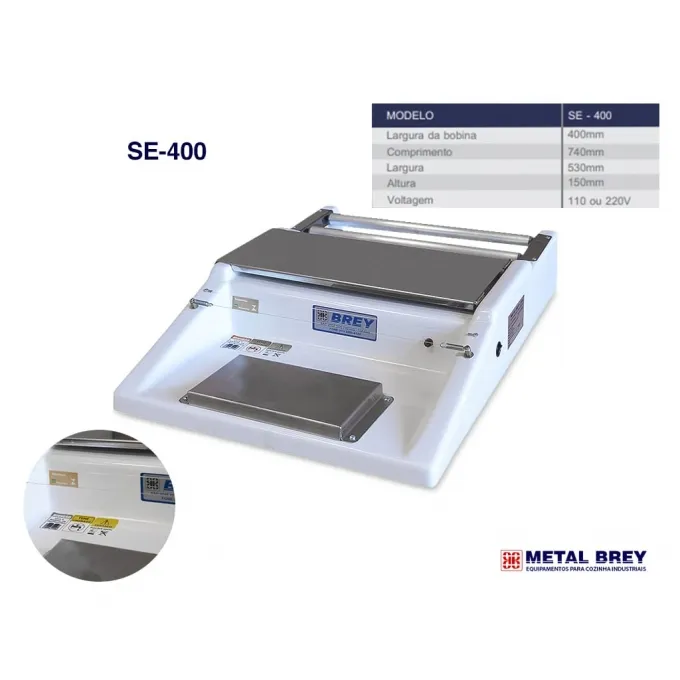 - Embaladora Para Filme de PVC esticável modelo SE-400 - Capacidade para bobina de 40 cm de largura. - Carenagem totalmente fabricada em fibra de vidro - Dimensões: 740 x 530 x 150 mm de altura. - Produto com certificação INMETRO - Potência: 90 W